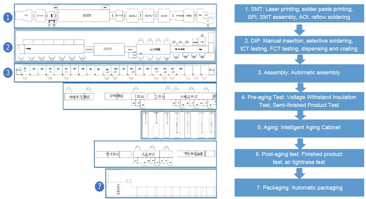 4. Tootmine: tootmine kinnitatud skeemi järgi range kvaliteedikontrolliga;